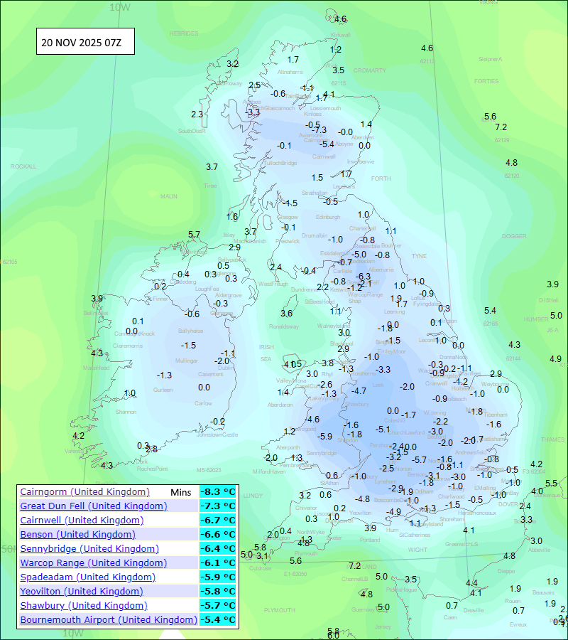 20 Nov UK Min Cairngorm -8.3c