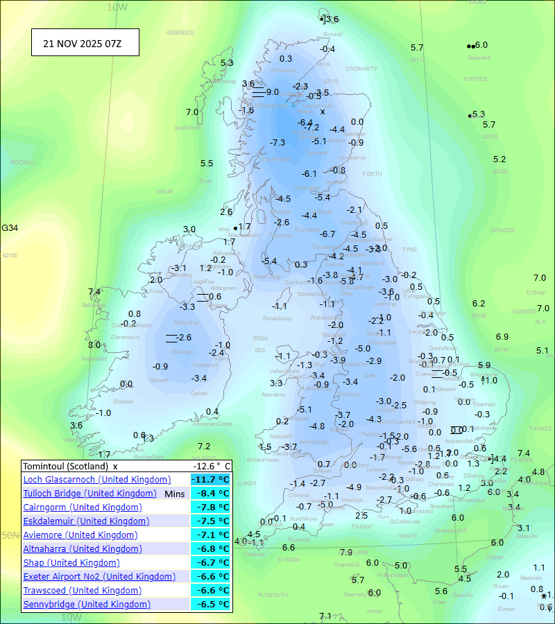 21 Nov UK Min Tomintoul -12.6c