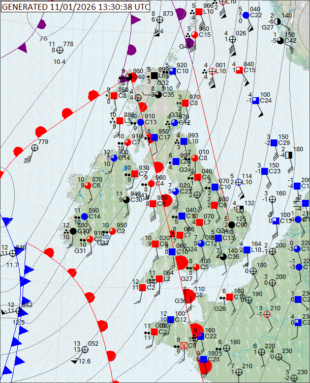 Auto Surface : Reports hourly, Analysis at 00/06/12/18 (UTC/GMT) + 1-2 hours